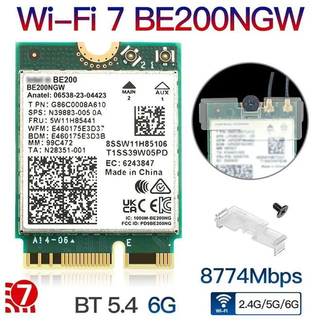 BE200 Wifi Card Compatible with Standard NGFF M.2 Key E Slot