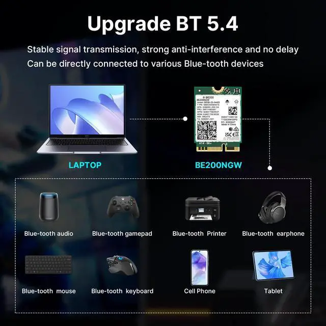 BE200NGW M.2 wifi card with Bluetooth 5.4 – Enhanced Wireless Peripherals
