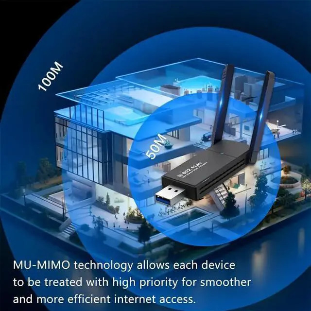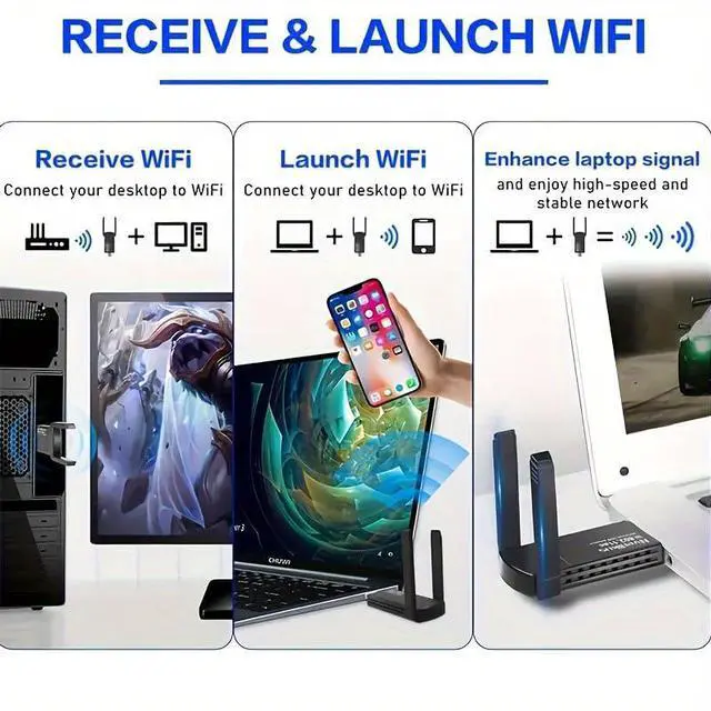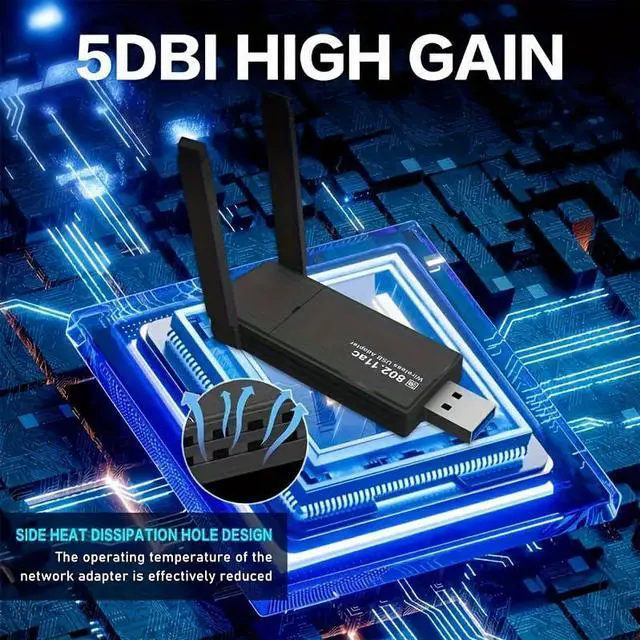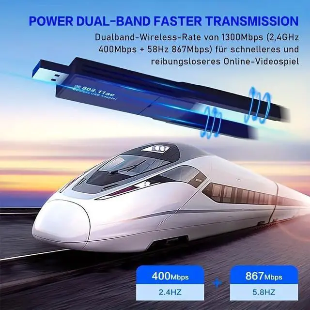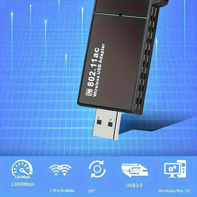 Mini Wireless Adapter Network Adapter for Desktop PC ,USB 1300Mbps WiFi Adapter for PC Built-in High Gain Dual Band Antenna 5 G / 2.4G for Desktop PC Laptop Windows 7/8/8.1/10/11