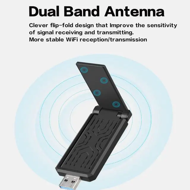 USB WiFi Adapter for Desktop PC, AC1300Mbps USB 3.0 WiFi Network Adapter with 2.4GHz/5GHz,High Gain Dual Band 5dBi Antenna, Support Windows 11/10/8.1/8/7/XP/Vista, Mac OS 10.9-10.15