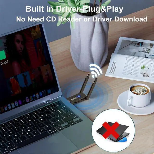 This wifi 6 adapter supports CD-free installation, Thanks to the built in driver, just click to install,no need to download driver.
