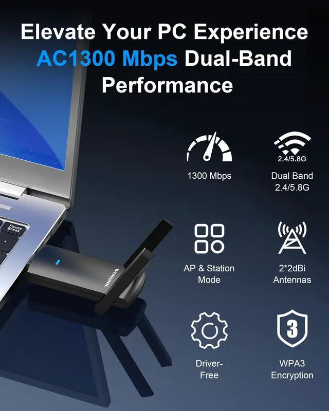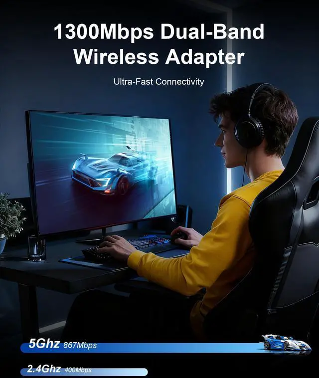 AC1300 High-Speed USB Adapter - Dual band Speeds Up to 1300Mbps, upgrade your network experience or extend your devices lifespan with this wireless adapter. Delivers not only blazing-fast speeds but also rock-solid stability for lag-free gaming and smooth 4K streaming
