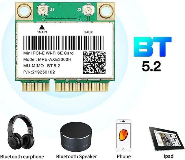 Wi-Fi 6E Half Mini Pci-E Wifi Network Card 802.11Ax Ac Mpe-Axe3000H 2.4Ghz 5Ghz 6Ghz 5400Mbps Wireless Card Bt5.2 Mu-Mimo Mini Pcie Wi-Fi 6E Adapter Ofdma Vpro For Windows 10/11 Pc Laptops