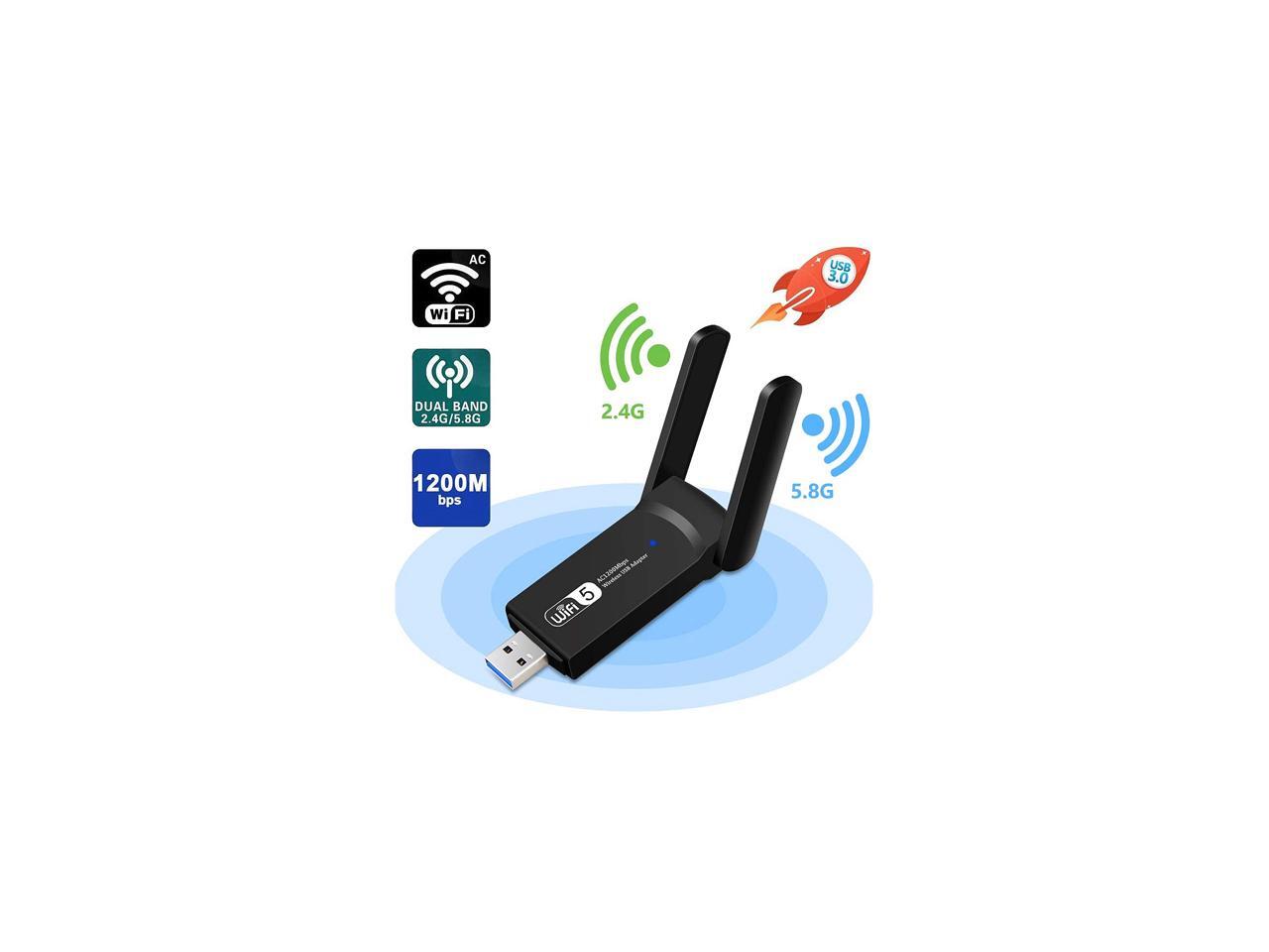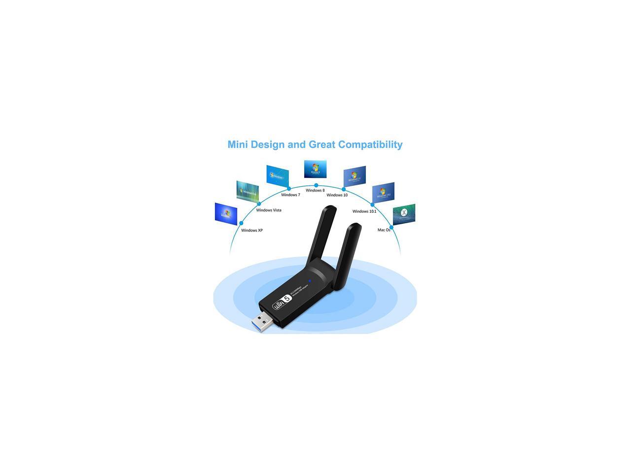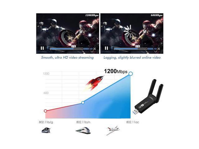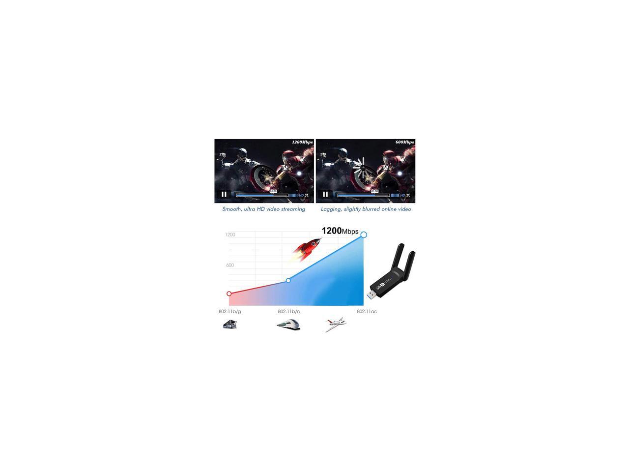 USB WiFi Adapter for PC 1200Mbps Wireless Network Adapter WiFi Dongle Stick for Desktop Dual Band 2.4GHz/300Mbps 5.8GHz/867Mbps USB 3.0 Compatible with Win XP/7/8/10/vista, Mac 10.6-10.15, Linux