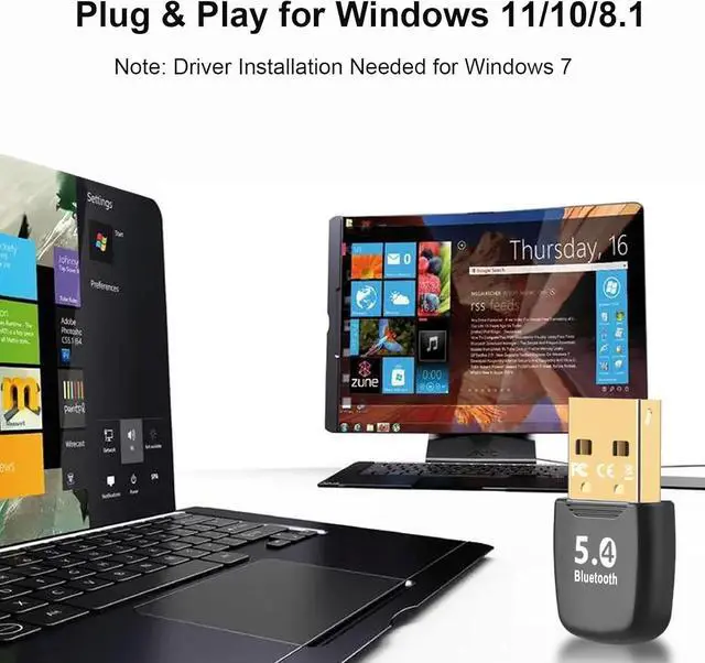 The Lastest Bluetooth V5.4: This Bluetooth adapter uses Bluetooth 5.4+EDR technology with dual modes for Bluetooth 5.4 Low Energy(BLE). The latest technology brings you a better user experience. Compatible with Bluetooth 5.0/5.1/5.2/5.3. Plug and Play: This Bluetooth dongle is able to connect desktop PC or laptop with Windows 11/10/8.1 directly without driver installation needed. (Driver installation need for Windows 7 and NOT support Windows 8/XP/Vista/Linux and Mac OS) 7 Devices Connecting Simultaneously: Our PC Bluetooth dongle supports pairing with 7 different types of Bluetooth devices at the same time without interfering with each other and save USB port. ( Bluetooth speaker, Mouse, Keyboard, GamePad, headphones, printer, cellphone)
