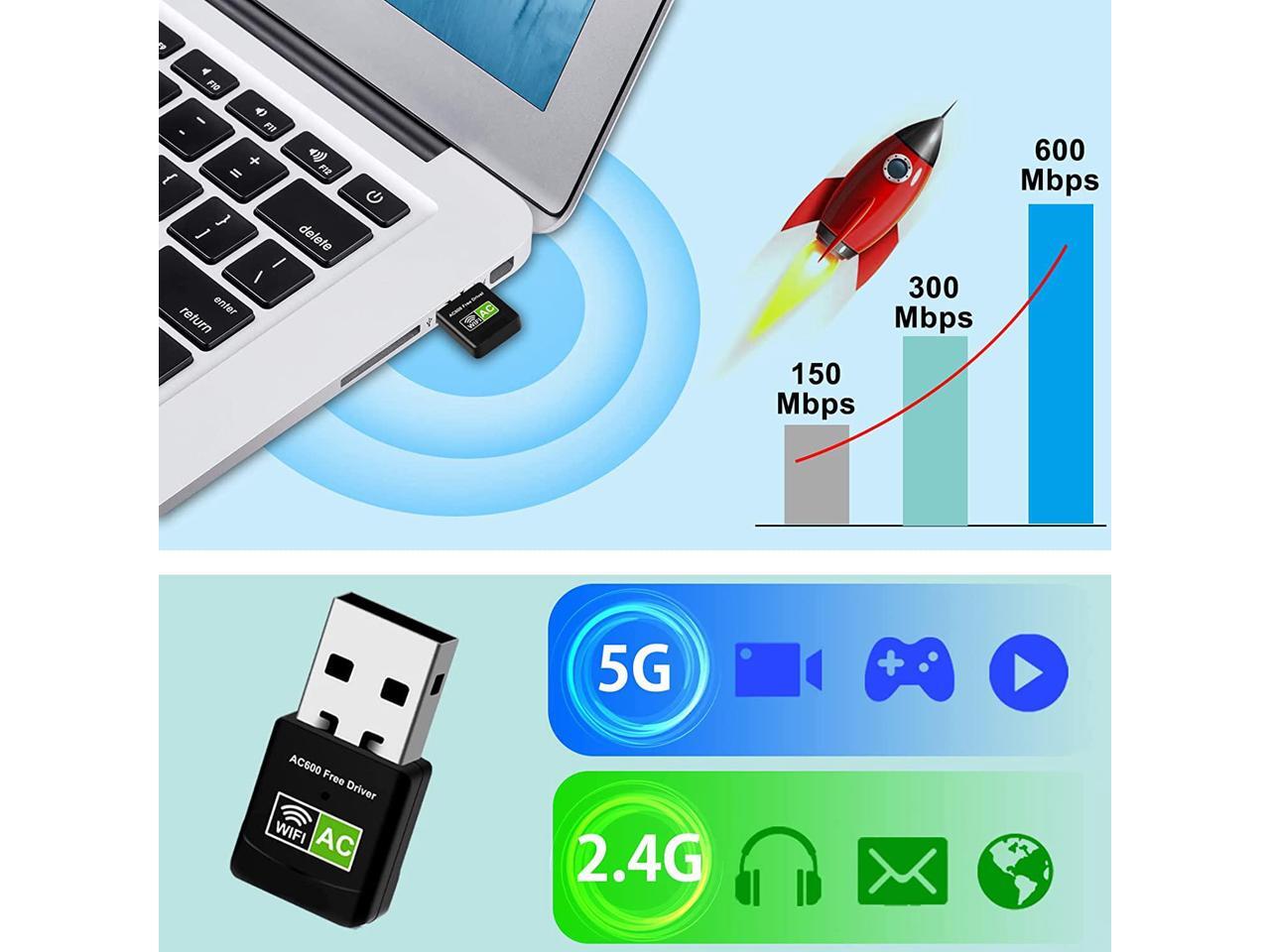 USB WiFi Adapter, 600Mbps Mini Wireless WiFi Network Adapters for Desktop Computer/Notebook PC, Dual Band 5G+2.4G WiFi Dongle Laptop External Network Card for Windows 11/10/8/XP etc, No Need CD Drive