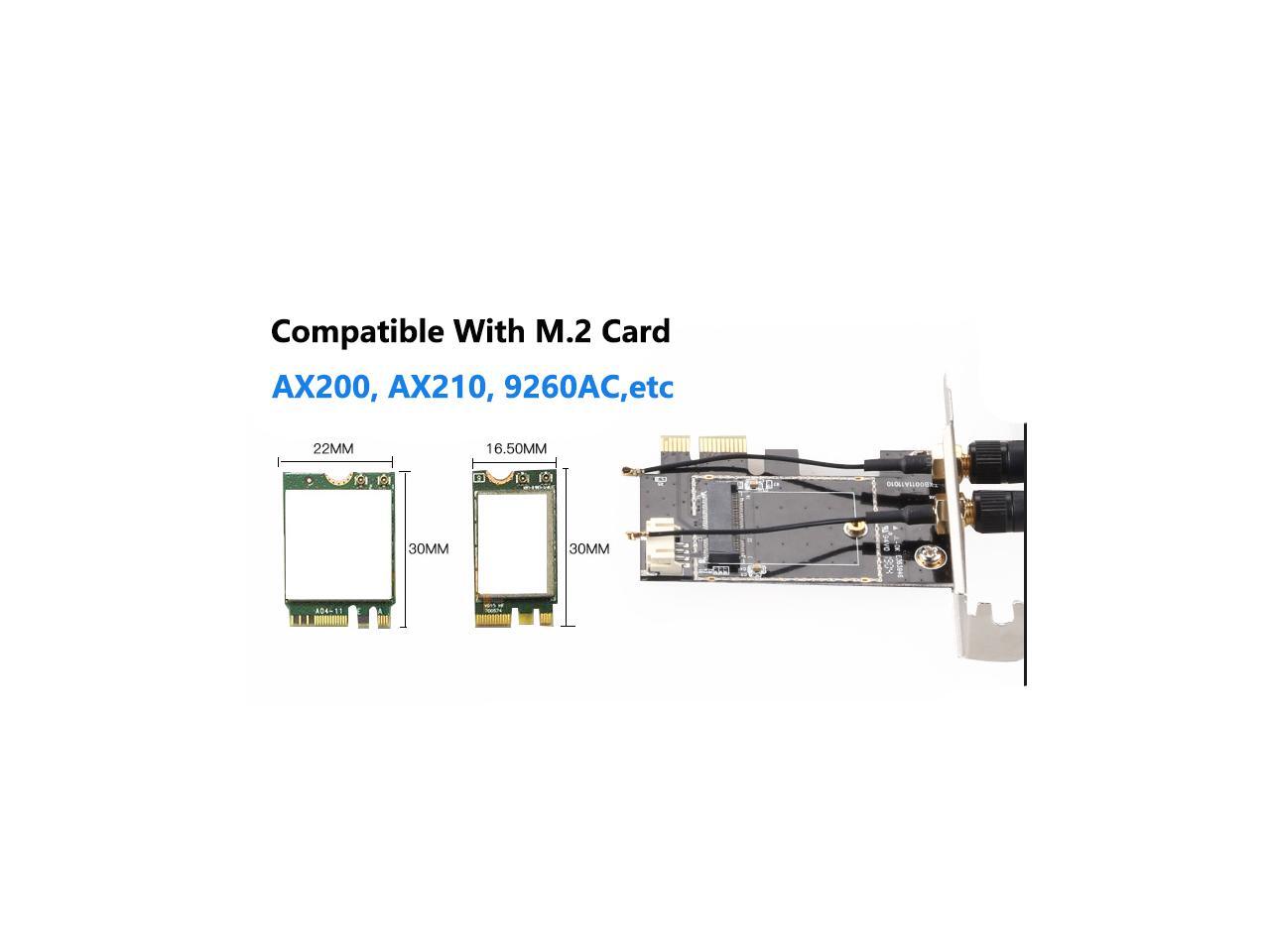 M.2 To PCI Express Wireless Adapter Converter with 2x Antenna NGFF M.2 WiFi Bluetooth Card For Intel AX210 AX200 9260 8265 8260 BCM94352Z DW1560