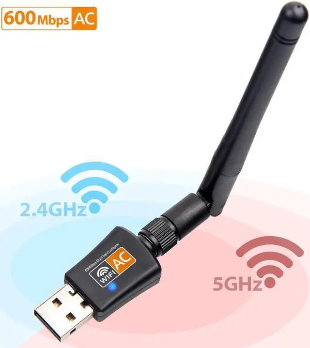 802.11AC Dual Band 600Mbps Wireless USB Wifi Adapter Dongle support Windows Mac 2.4GHz/5GHz 2DBi Antenna for desktop laptop PC