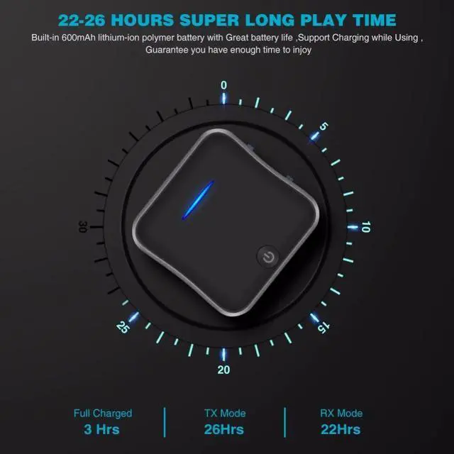 Real-Time Audio Transmission: Bluetooth transceiver adopt the aptX Low Latency Technology in both TX & RX modes, which can reduce audio lag under 40ms and let you enjoy high-quality audio in sync with the picture (Your Bluetooth headphones or speaker must also support aptX LL / aptX as well.)