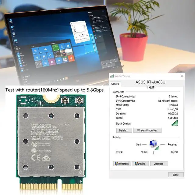 QCNCM865 also integrates dual Bluetooth and supports LE audio, as well as 2 Mbps Bluetooth Low Energy (BLE) and BLE Long Range. Higher data rate, lower latency and enhanced network reliability makes QCNCM865 suitable for laptop applications.