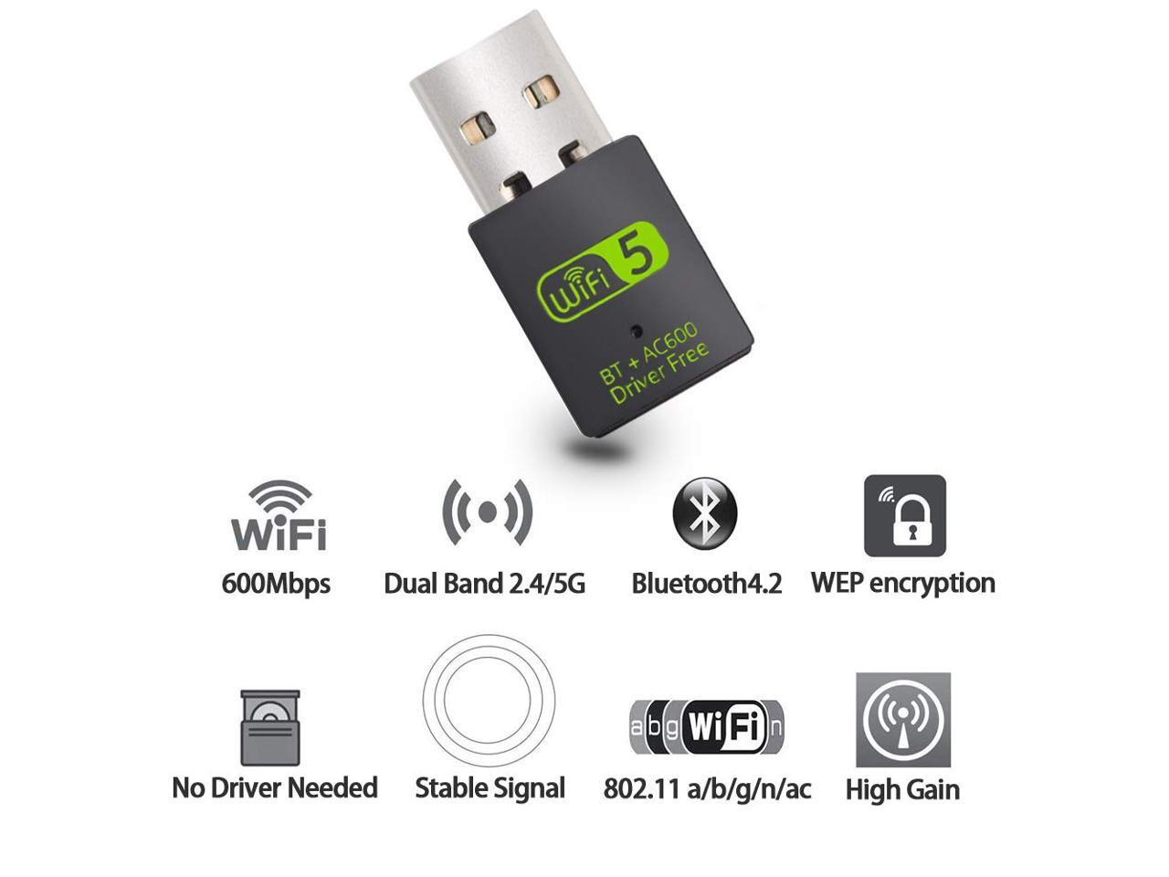 USB WiFi Bluetooth Adapter, Hannord 600Mbps Dual Band 2.4/5Ghz Wireless Network External Receiver, Mini WiFi Dongle for PC/Laptop/Desktop