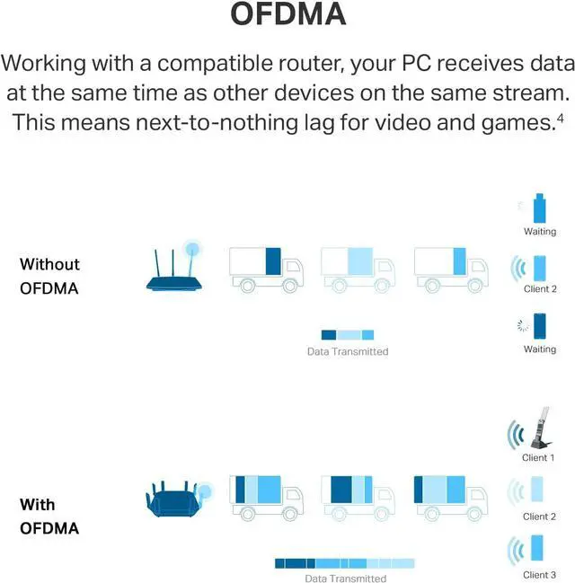 Connect More Devices with Lower Latency: MU-MIMO and OFMDA technology works hand in hand to boost throughput and efficiency of your Wi-Fi network. MU-MIMO communicates with your network to provide multiple data streams simultaneously, greatly increasing the number of connected devices while OFDMA enables sharing a single data stream between multiple devices to further enhance the efficiency of each data stream.