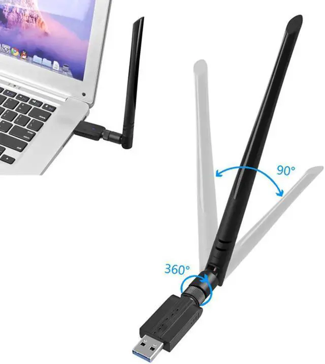 Powerful Antenna 5dBi & USB3.0: Stronger signal capability, a 5dBi USB 3.0 antenna is obviously 10 times faster than USB 2.0, provide better performance and a wider range for the signal connection, compatible with USB 2.0. It can be rotated 360 ° rotation completely to get the best signal.