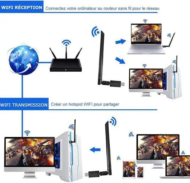 Works with all Router: Using Wifi AC1200 Key, you can upgrade your desktop, laptop, PC or Mac to work with any Wi-Fi AC router (WPA / WPA2 / WEP). You will not have missed calls or loss of signal quality.