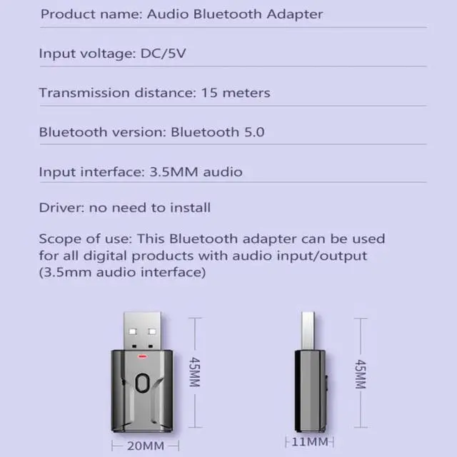 Boxed weight: 27gPackage Included:1x 5.0 Audio Transmitter/Receiver Adapter