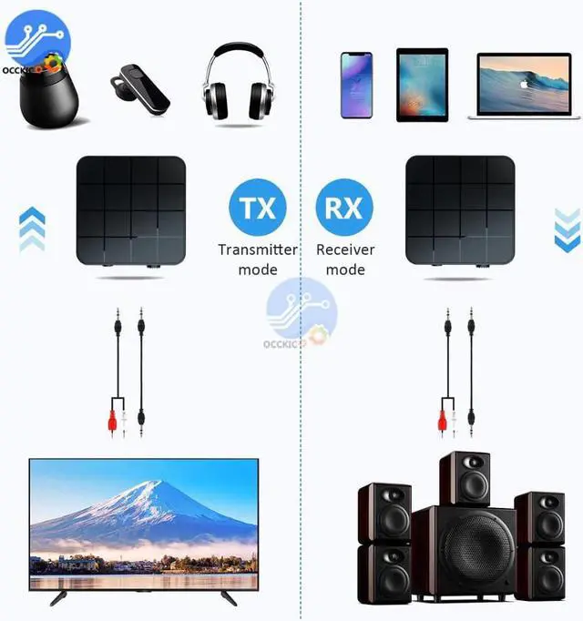 2.Transmitter modewirelessly streams audio from your non-Bluetooth TV, home stereo system, or CD player to your Bluetooth headphones or speakers