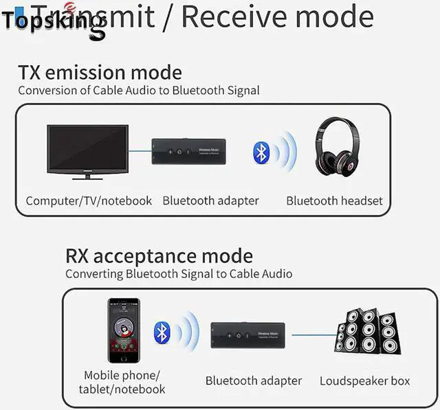 a) Connect the audio interface marked by 'RX' to unbluetooth-enabled speaker or headset with 3.5mm audio cable.