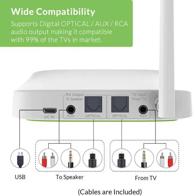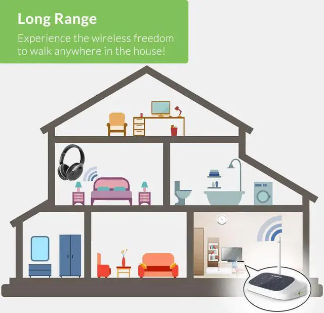 EXTENDED LONG RANGE] Featuring Bluetooth Class I technology, our transmitter's signal reaches up to 164 feet / 50m! Please note the range is dependent upon physical obstructions and wireless interference