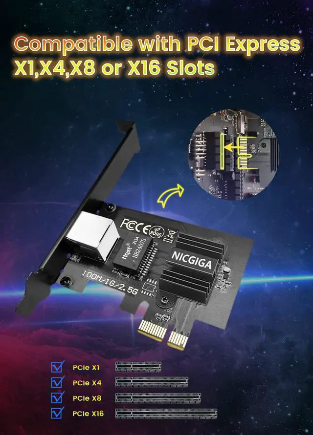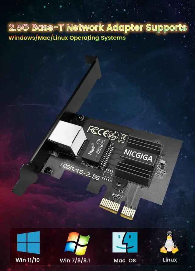 [Super-fast 2.5G bps Networking] High up to 2.5 x-speed with Realtek RTL8125B chip much faster data-transfer speeds for gaming living broadcasts and downloads in bandwidth-demanding tasks. [Complete Compatibility] Seamless backward compatibility for 2.5G bps/1Gbps/100Mbps Support Windows10/ 8.1 /7 Mac and Linux no dirver needed on Windows10 easily download the driver in Realtek official website for other OS. [PCIe to 2.5G RJ45] This 2.5GBASE -T PCIe Network Adater convers a PCIe slot(X1/X4/X8/16) into a 2.5G RJ45 Ethernet Port.