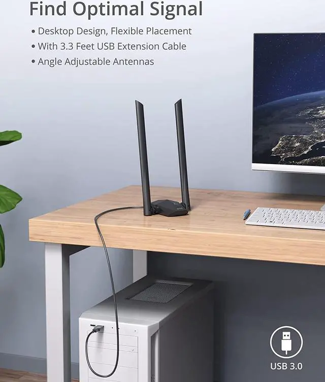 Find Optimal Signal: Comes with desktop design and a 3.3 -foot USB 3.0 extension cable. Flexibly place your WiFi 6 USB adapter in a spot with optimal signal reception