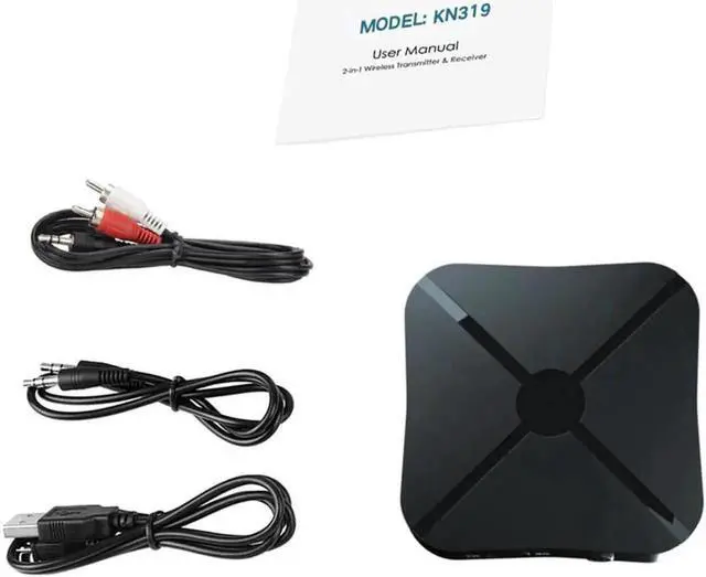 Package include: 1 * Bluetooth transmitter receiver. 1 * Micro USB power cable. 1* RCA cable. 1 * 3.5 mm auxiliary cable. 1 * User Manual (English only).