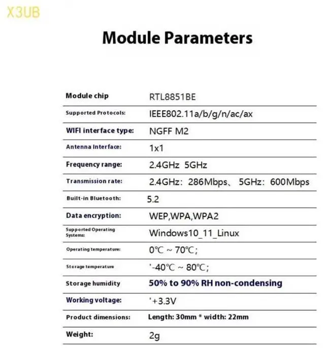 X3UB AX900 RTL8851BE WiFi6 5Ghz Networking Adapter For PC Desktop Laptop Double Band Bluetooth-compatible 5.2 Support
