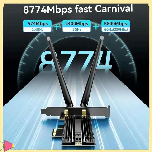 7 Wireless Network Card Bluetooth 5.4 PCIE Adapter 8774Mbps Tri-Band 2.4G /5G/6Ghz For Desktop PC 10/11