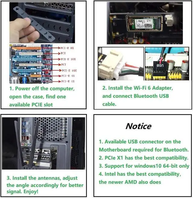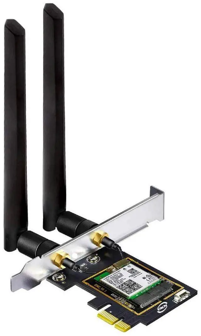 This 11ax WiFi card uses AX210 chipset, supports 2x2 WiFi 6E technology, 6GHz 2402Mbps 5GHz 2402Mbps and 2.4GHz 574Mbps and other new functions, including UL and DL OFDMA and 1024QAM, 160MHz channel, target wake-up time and space reuse. Can provide nearly 40. In dense or congested environments, the peak data rate is increased by %, and the capacity is increased by up to 4 times.
