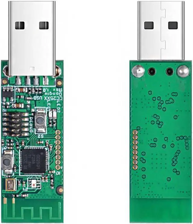 Features: * The CC2531 USB dongle is a fully operational USB device which provides a PC interface to IEEE 802.15. 4 / ZB applications. * Comes with a CC2531ZNP-Prod firmware, it is a ready-to-go CC2531 USB dongle for ZB 2mqtt application. * The dongle can be plugged directly into your PC/Raspberry etc used as a ZB packet sniffer. * Two buttons and two LEDs for user interaction. * Lead out 8 IO connectors. Debug interface. USB dongle size is 5.6 * 1.6 * 0.7 cm.