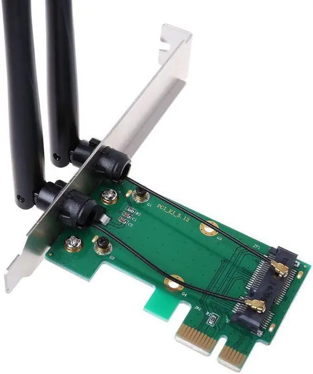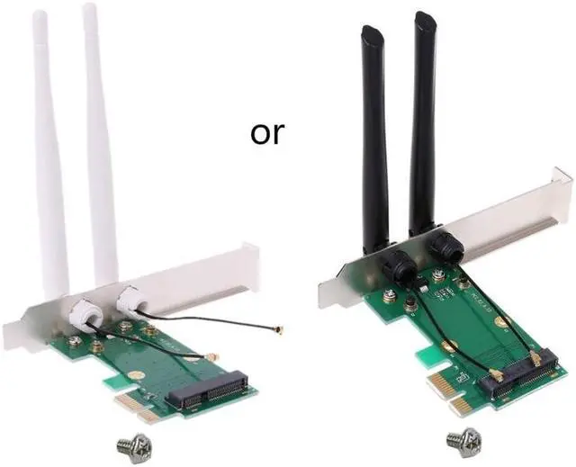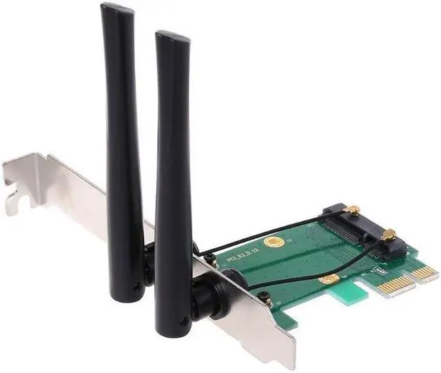 Mini PCI-E to PCI-E Adapter with 2 antennas is designed for wireless application on desktop PCs.