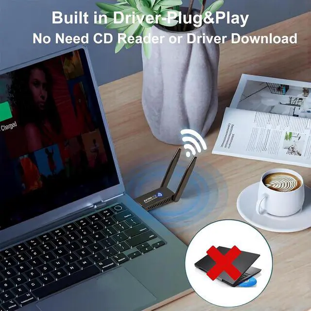 This wifi 6 adapter supports CD-free installation, Thanks to the built in driver, just click to install,no need to download driver.