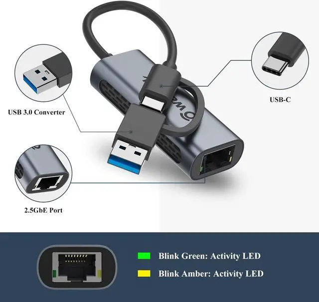 2.5G SuperFast Ethernet Performance - 2.5 Gigabit Ethernet port supports a super-fast network speed up to 2500Mbps ( 2.5G bps), double the performance of a traditional gigabit Ethernet adapter and downward compatible with 10 /100/1000Mbps. Come and enjoy faster file transfers, smoother video conferencing and seamless streaming.