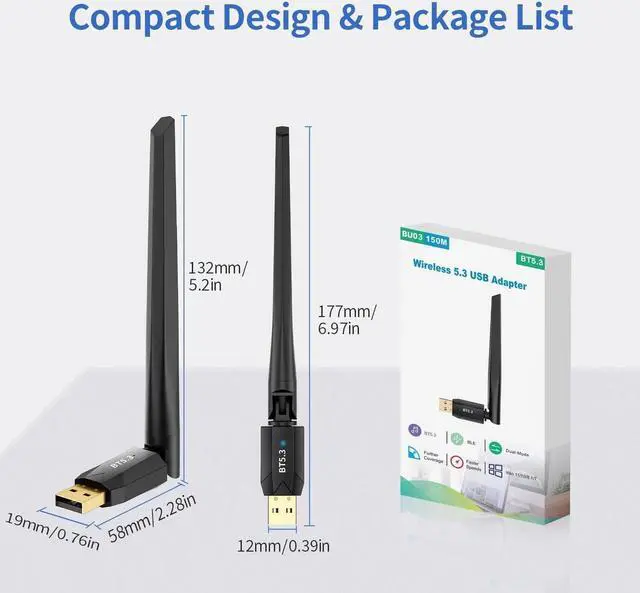 [Bluetooth 5.3 Adapter] Uses the latest Bluetooth 5.3+EDR technology, supports enhanced data rate (EDR) and transfer rates of up to 3 Mbps. Dual-mode support Bluetooth 5.3 Low Energy (BLE). Backwards compatible with Bluetooth 2.0/2.1/3.0/4.0/5.0/5.1.