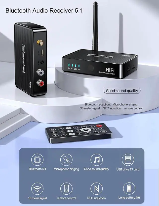 Long Range Wireless----The Bluetooth stereo receiver also gives you up to 33 ft of range, and stable transmission, support Remote control