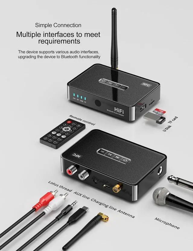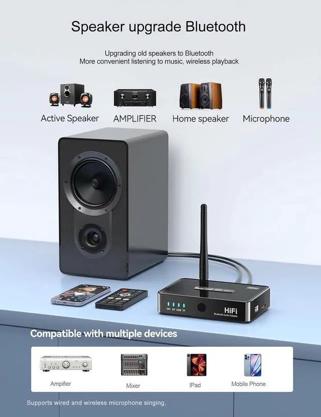 Multifunctional Interface----Bluetooth adapter supports RCA/3.5mm/AUX audio output, meeting the needs of a variety of devices with multiple audio interfaces. Also support BT+USB+TF input.