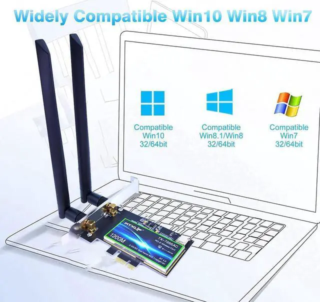 [Wide Compatibility] AC1200Mbps PCIE Gigabit network card, compatible with Windows 10/11, Windows Server (32/64 bit). Not for Windows Vista system. Works with PCI-E X1, X4, X8 and X16 slots..
