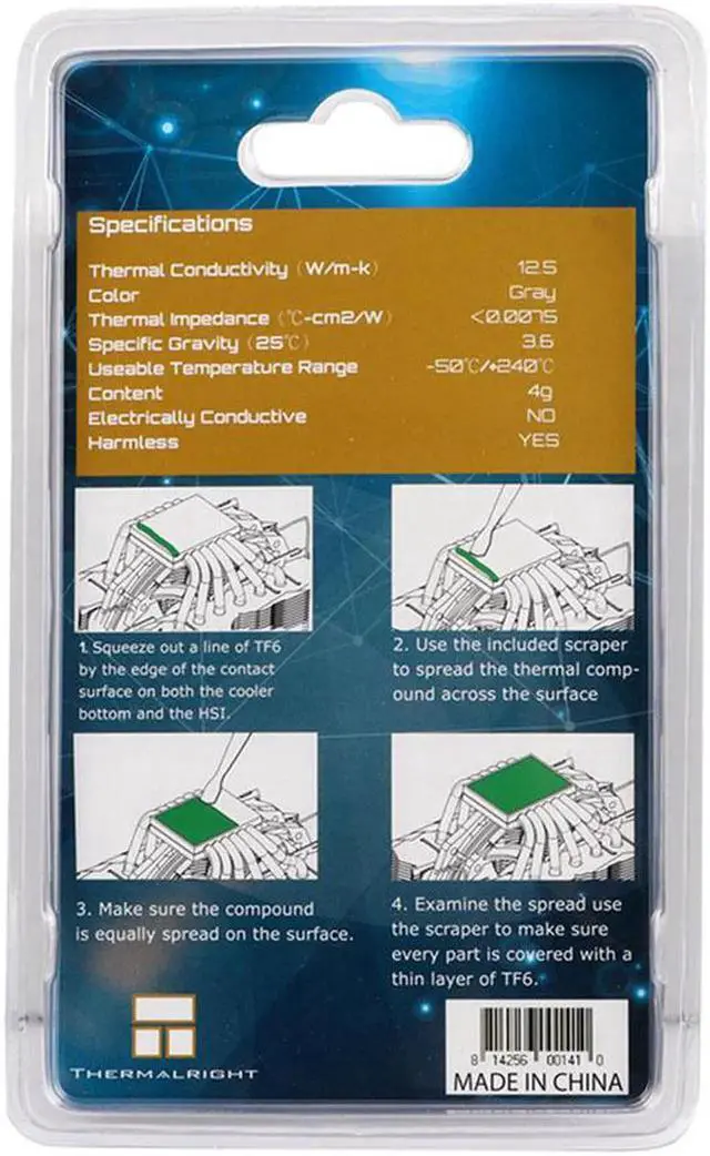 Thermalright TF6 12.5W/m.k 4g Thermal Grease for CPU heat dissipation computer notebook Cooling silicone grease with scraper