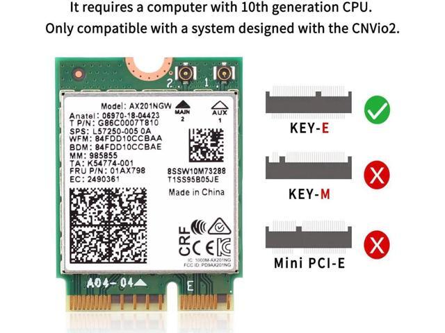 Wi-Fi 6 Intel AX201 M.2 Key E CNVio 2 Wifi Card Dual Band 3000Mbps Wireless Bluetooth 5.0 2.4Ghz/5Ghz 802.11ac/ax AX201NGW