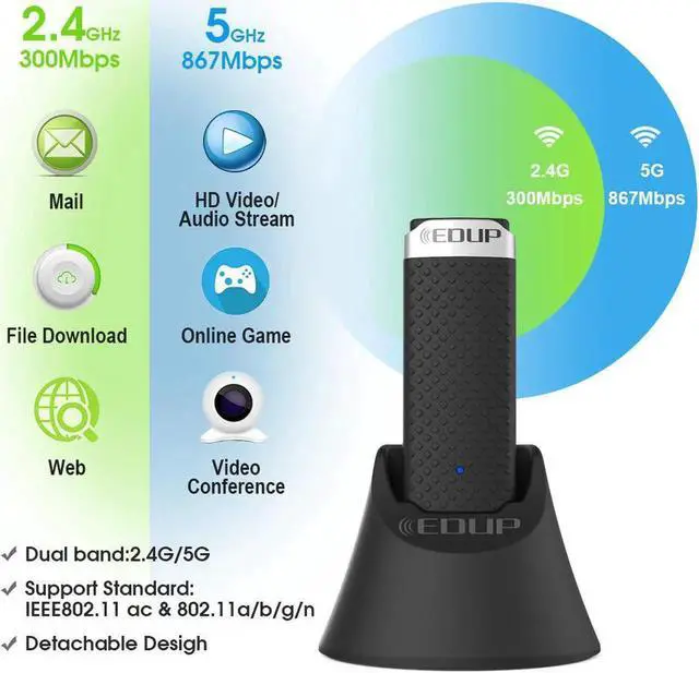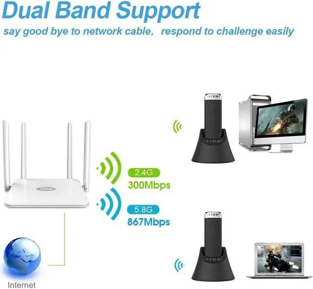 Transmission speed 2.4GHz up to 300Mbps and 5GHz up to 867Mbps