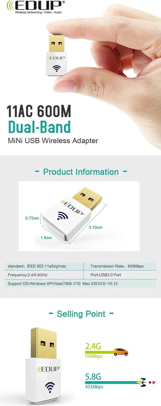 1 x 600Mbps wireless adapter