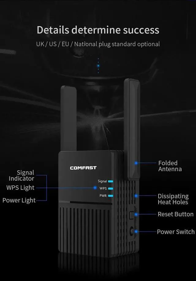 7. Smart indicator light, clear at a glance. The blue light of the signal light means that the relay signal is good, the red light means that the relay signal is poor, and the blue light flashes means that the relay is in progress.