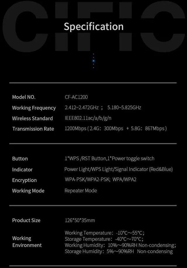 1. 1200Mbps high-speed transmission rate ( 2.4GH z300Mbps, 5.8GH z 867Mbps ).