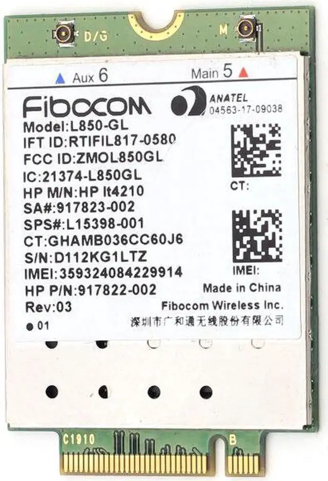 1 x Fibocom L850-GL SPS:L15398-001WWAN Card
