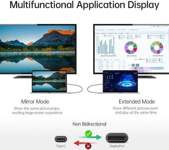 Note: It is a Unidirectional Cable, only works to convert from USB-C to DisplayPort display