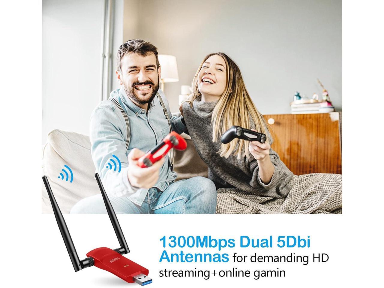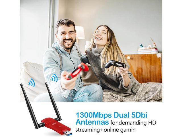 USB Wireless Adapter for PC Desktop 1300Mbps WiFi Adapter Dual Band 5dBi Antenna for Laptop USB 3.0 Fast Connect,Computer Network Wi-Fi Adapters for Windows 11/10/8/7/Vista/XP/Mac OS/Linux