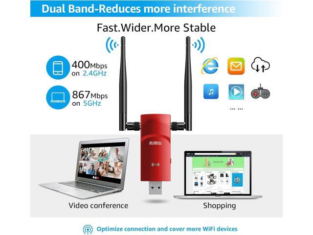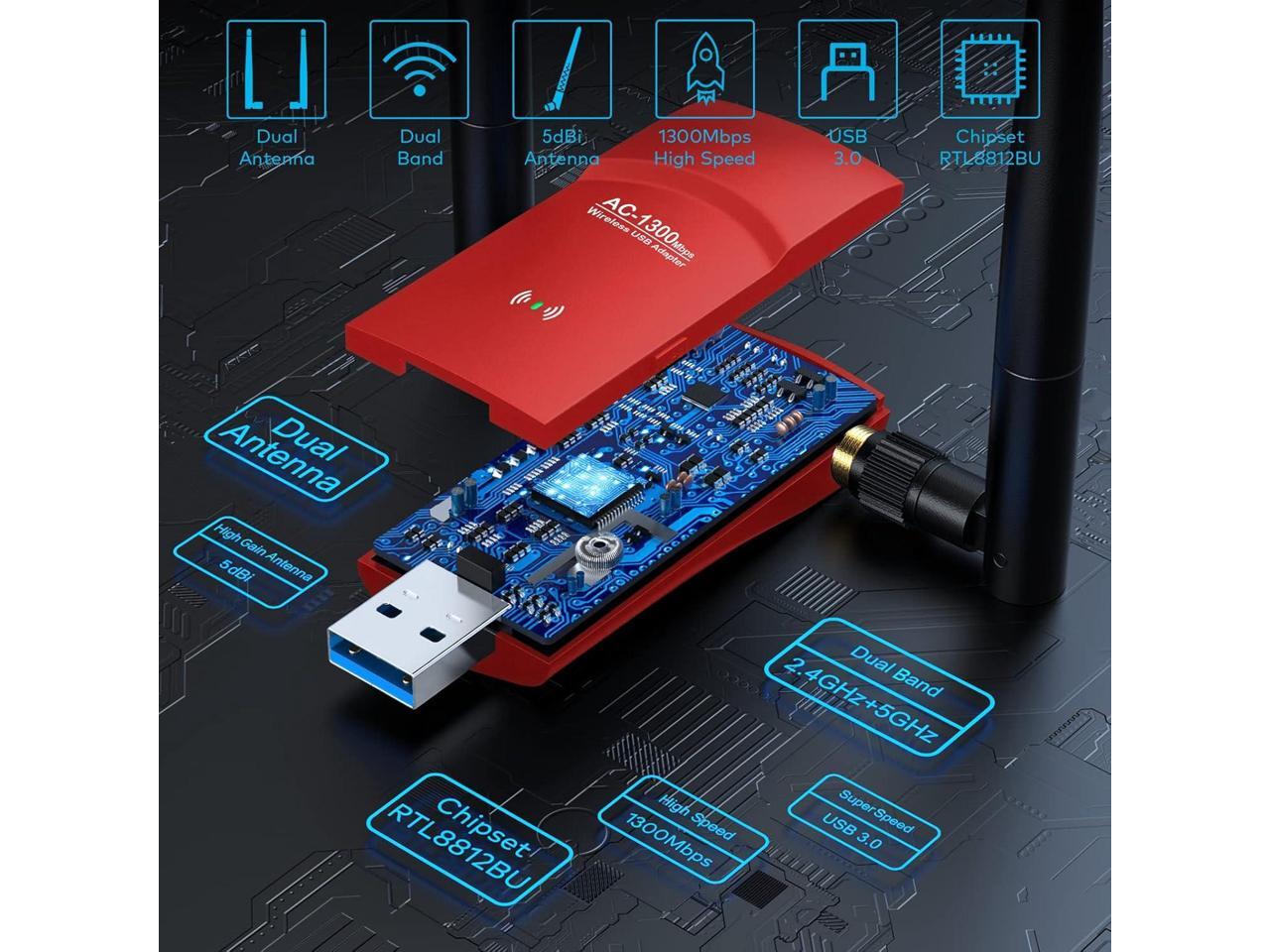 - 1300Mbps High SPEED USB WiFI Adapter - Dual Band WiFi Dongle, USB Wifi Adapter for PC, 802.11AC RTL8812BU Wifi usb, up to 867Mbps on 5Ghz band or 400Mbps on 2.4Ghz band.