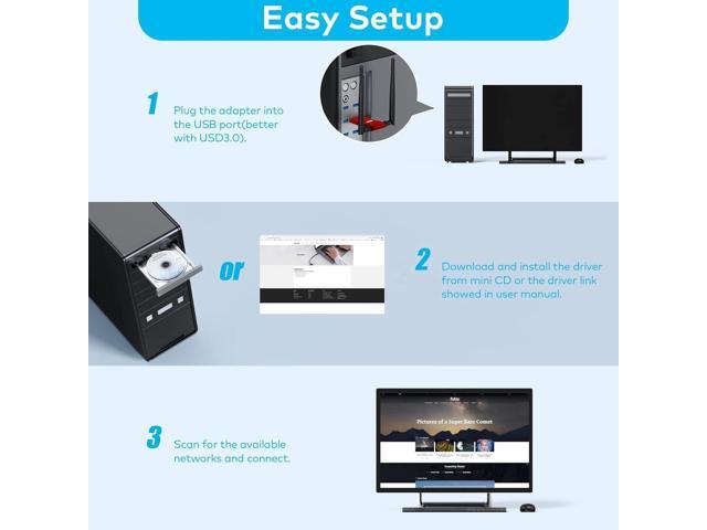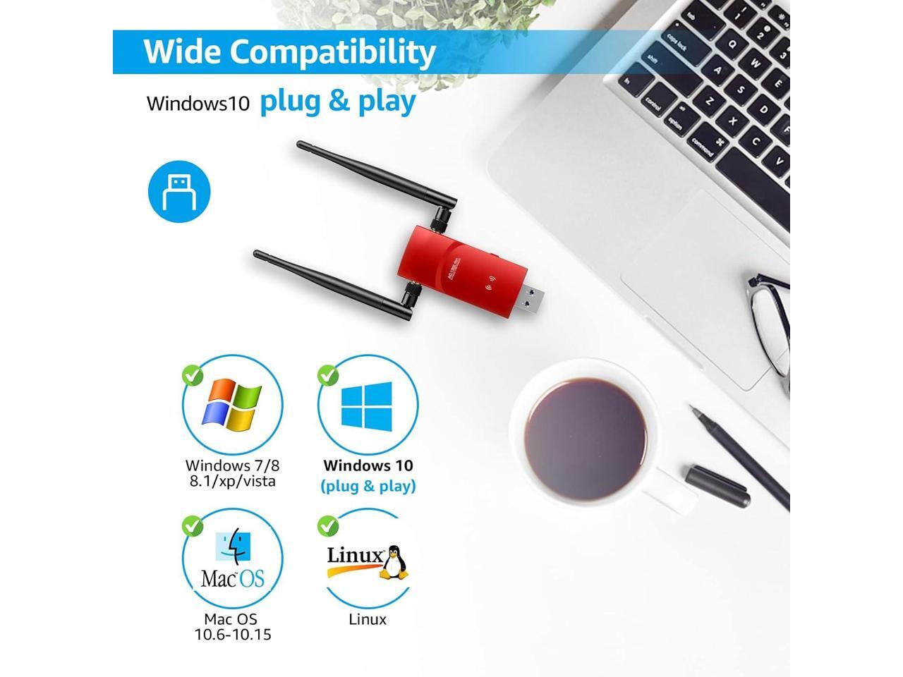 - Wide Compatibility: PC Wi-Fi adapter(Need install driver) support Windows 10 / 8 / 8.1 / 7 / XP / Vista ( plug and play for Windows 10 ) / Mac OS 10.6 -10.15.3 for MacBook / Linux(CD installation driver included), DON'T support smart TV(for Android) ;Ultra-fast wireless network speed, make you have a non-general web experience.