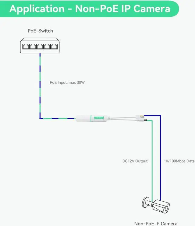 APPLICATION - Plug and play, no configuration is required. Suitable for CCTV surveillance system to power IP camera, other non-PoE devices like microphone, Wireless AP, VoIP Phone, etc.