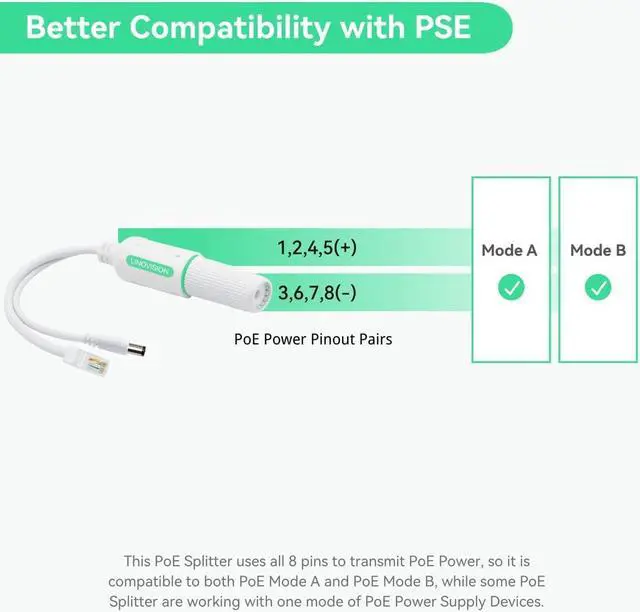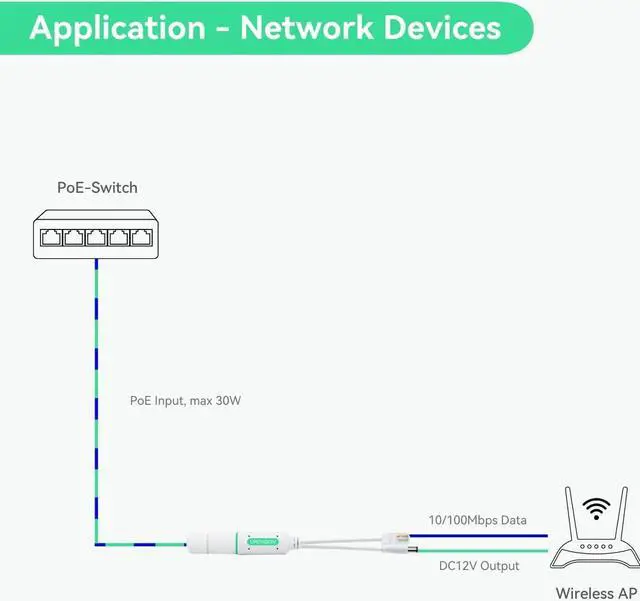 SURGE PROTECTION - Reaching 4KV surge protection, the PoE ports owns the capacity to keep the PoE splitter cable from lightning strikes and other electrical surges, offering reliable performance even in some harsh environments.