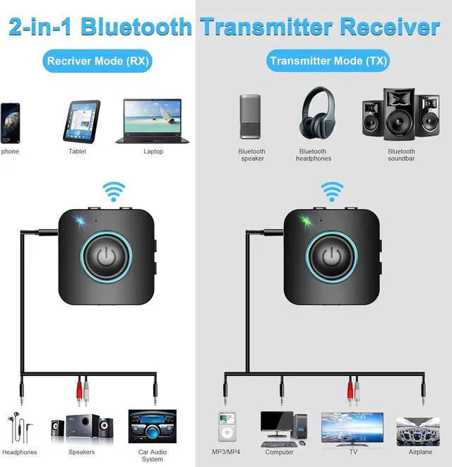 In RX mode, the receiver can connect to two Bluetooth-enabled smartphones or computers at the same time.